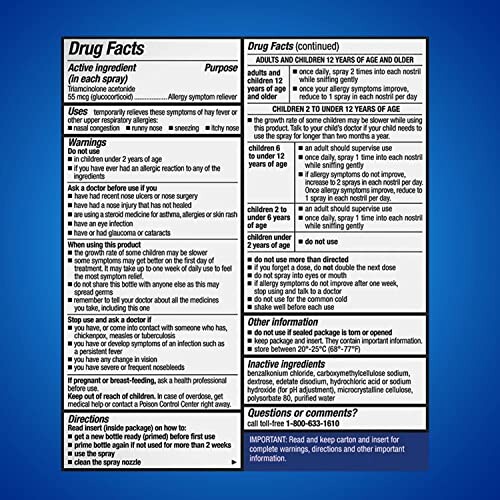Nasacort is engineered to target nasal allergy symptoms effectively. Each spray delivers a precise dose, ensuring optimal performance. The active ingredients work quickly to provide relief, allowing users to feel better and return to their routine without the distraction of allergy symptoms.